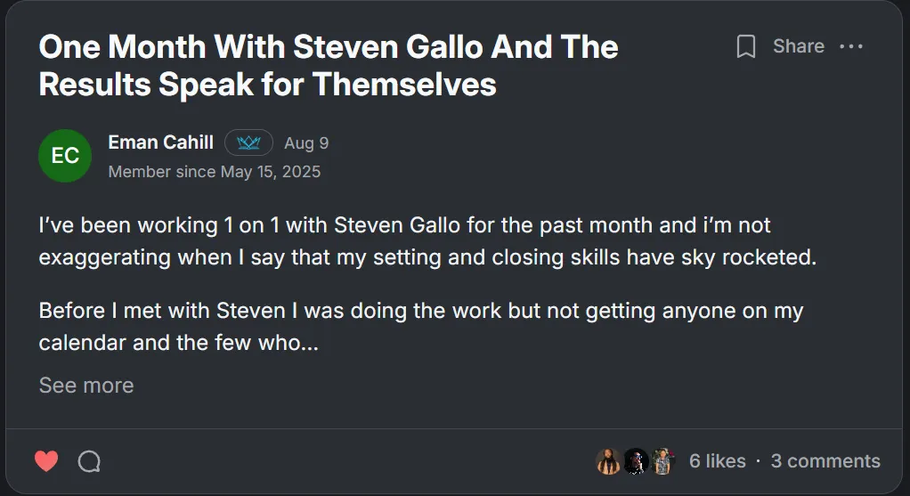 With our mentorship, Ches refined his sales process, mastered client acquisition, and learned to close with confidence.